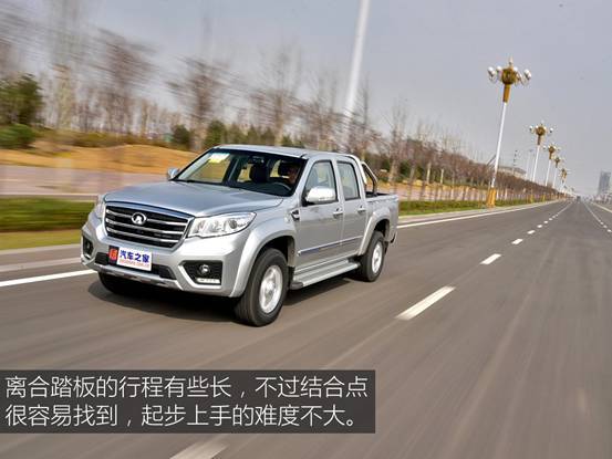 大多數(shù)皮卡產(chǎn)品的離合踏板都要普遍偏高一些,風駿6的離合踏板位置相對適中,不過行程也是有些長的。好在結合點很容易找到,并且踏板的回饋力度并不生硬。油門的相應表現(xiàn)積極,腳感輕盈自然,起步上手還是比較輕松的,適應起來無難度,不容易出現(xiàn)熄火的現(xiàn)象。