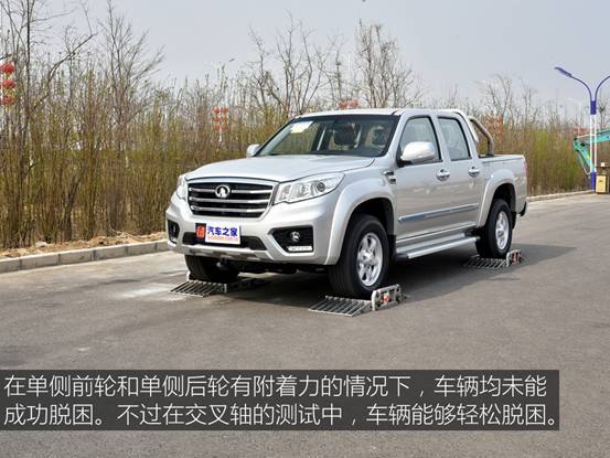 在交叉軸的測試環(huán)節(jié)中,風駿6的前輪和后輪在對角線的位置均各有一個附著力車輪,在電子限滑的作用下,車輛還是能夠輕松脫困的。
