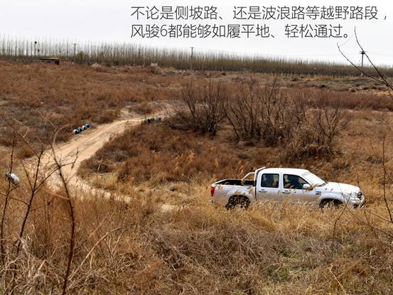從日常駕駛來看,風駿6上手輕松,雖然動力輸出中規(guī)中矩,不過開起來還是比較順手的。噪音的控制還算令人滿意,剎車整體表現(xiàn)線性,并且沒有前半段偏軟的現(xiàn)象。在性能測試方面,加速和剎車成績在同級別車型中,也能有相對不錯的表現(xiàn)。7.8升/百公里的平均油耗值得肯定。四驅測試方面,雖然僅通過了交叉軸的環(huán)節(jié),不過我們測試的許多皮卡車型,如果沒有選裝后橋差速鎖,基本都是這樣的水平,而面對實地的越野環(huán)境,風駿6不成問題。