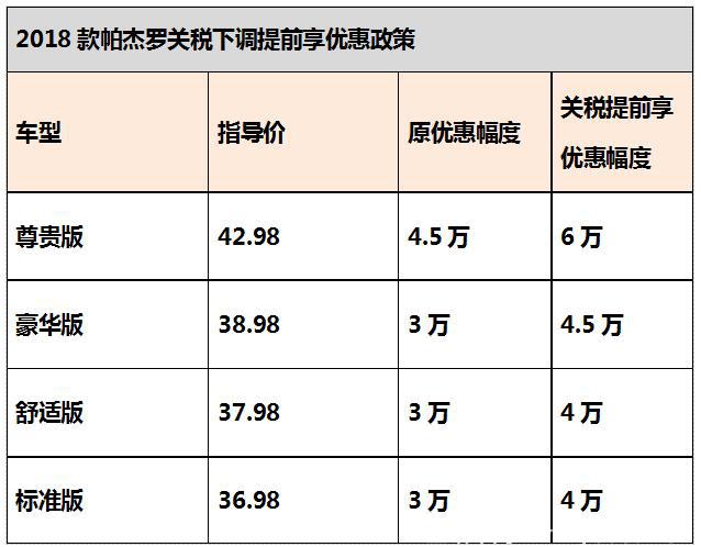 近日,國家宣布進(jìn)口車關(guān)稅將從7月1日起下調(diào)至15%。三菱汽車銷售(中國)有限公司積極響應(yīng),決定將關(guān)稅下調(diào)的價格優(yōu)惠提前啟動,在原來的優(yōu)惠基礎(chǔ)上,進(jìn)一步優(yōu)惠,將降稅金額提前全額反饋給消費者,價格從最高優(yōu)惠4.5萬元人民幣提升到最高優(yōu)惠6萬元人民幣,真正將原裝進(jìn)口帕杰羅的優(yōu)惠進(jìn)行到底。此項優(yōu)惠政策從2018年5月24日開始實施,消費者可就近前往當(dāng)?shù)亟?jīng)銷商咨詢。