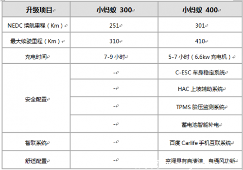 據(jù)了解,小螞蟻 400配備一塊能量38kwh的高效三元鋰電池,實現(xiàn)了綜合工況(NEDC)續(xù)航301km,60km/h等速最大續(xù)航410km,達到同級別最高續(xù)航水平;更重要的是,小螞蟻 400在同級車型中首次搭載6.6kw的充電機,能夠?qū)⒙鋾r間縮短一半。同級別同續(xù)航充電時間最短。