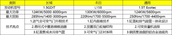 考慮到長城汽車這么厲害,所以我們?yōu)榱艘惶骄烤?,特地研究了一下長城汽車的相關(guān)技術(shù),發(fā)現(xiàn)長城汽車這款1.5GDIT發(fā)動機(jī)做了很多技術(shù)革新,可以看看下面這個對比圖: