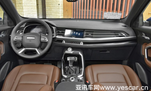 內(nèi)飾上哈弗H6呼應(yīng)外觀的穩(wěn)重形象,采用了上深下淺的配色風格,在細節(jié)上加入凸顯質(zhì)感的銀色裝飾,整體上中規(guī)中矩,造型傳統(tǒng),側(cè)重實用一點。