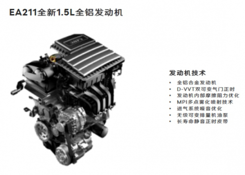 在技術(shù)層面上,這臺(tái)自然吸氣的1.5L發(fā)動(dòng)機(jī),與同EA211系列的1.2T/1.4T渦輪增壓發(fā)動(dòng)機(jī)基本處在同一水平上,只是缺少了渦輪增壓模塊而已。比如:雙側(cè)VVT可變氣門正時(shí)調(diào)節(jié)、集成了排氣歧管的缸蓋、無級(jí)可調(diào)機(jī)油泵以及多處降低摩擦的細(xì)節(jié)設(shè)計(jì)等等。可以說,這臺(tái)發(fā)動(dòng)機(jī)已經(jīng)比老款的1.6L自吸發(fā)動(dòng)機(jī)優(yōu)秀了很多。先不說參數(shù)怎么樣,至少其在模塊化和輕量化上已經(jīng)有了十分優(yōu)秀的表現(xiàn),參數(shù)那些東西是可以人為地通過標(biāo)定來刻意提升的,但是會(huì)損失一定的發(fā)動(dòng)機(jī)壽命。