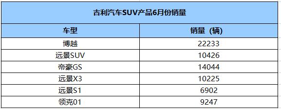 吉利SUV家族銷量再奪冠 博越連續(xù)19個月月銷破2萬