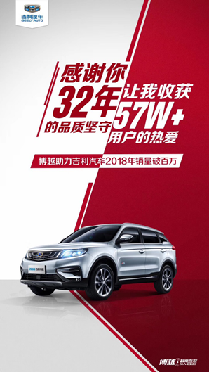 2018款博越持續(xù)熱銷(xiāo) 助力吉利汽車(chē)破百萬(wàn)
