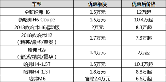 時(shí)值金九銀十,中國(guó)SUV市場(chǎng)迎來(lái)重磅炸彈。市場(chǎng)領(lǐng)頭羊哈弗宣布,9月1日至10月31日,哈弗H系主銷車型全面大幅優(yōu)惠降價(jià),降價(jià)幅度在1.4-2.4萬(wàn)元之間。其中,哈弗M6官降2.4萬(wàn)元,哈弗H6運(yùn)動(dòng)版優(yōu)惠2萬(wàn)元,全新哈弗H6優(yōu)惠1.5萬(wàn)元。