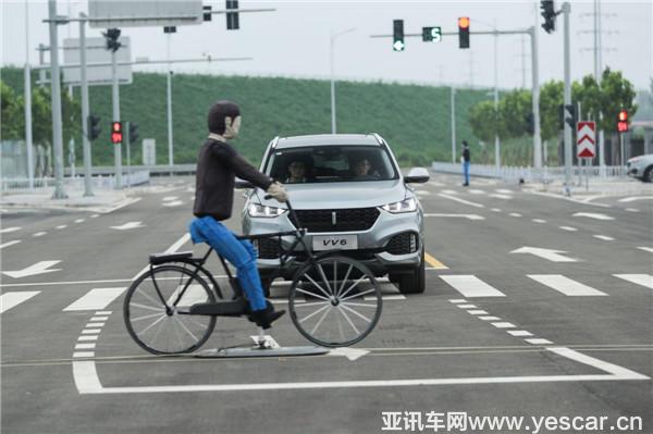 VV6車輛和行人識別采用前攝像頭與前雷達(dá)融合方案實(shí)現(xiàn),自行車采用前雷達(dá)識別,小于警報(bào)距離時就進(jìn)行警報(bào)提示,而小于安全距離,當(dāng)碰撞無法避免,駕駛員沒有采取任何制動措施時,系統(tǒng)會控制車輛在車速限制范圍內(nèi)完全剎停避免碰撞。面對障礙裝置與行人假人,VV6啟動AEB主動式緊急制動系統(tǒng),完美規(guī)避碰撞風(fēng)險。