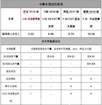 最后我們來看一下2018款昕動的配置,昕動共有七款車型,三個配置等級。我們分別從高中低配車型與競品車型的對比,來分析一下2018款昕動在安全性配置、舒適性配置方面的競爭力。