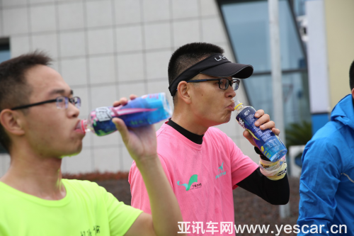 一小時(shí)的跑步活動(dòng)結(jié)束后,甬馬組委會(huì)為大家準(zhǔn)備好了怡寶魔力運(yùn)動(dòng)飲料等能量補(bǔ)給。稍事休整后大家進(jìn)入到吉利(杭州灣)研發(fā)中心展廳,在工作人員的講解中,了解到不少汽車“智造”的最新成果。