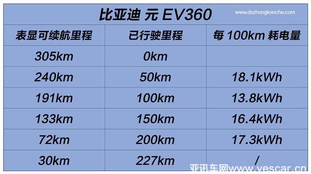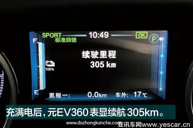 比亞迪元EV360充滿后,儀表上顯示的續(xù)航里程為305km,所以,我們試駕的這臺比亞迪元EV360的電池,實際"入行"時間比EX360短一些。