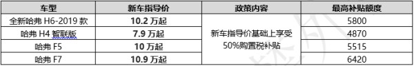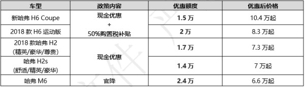具體來說,此次上市的全新哈弗H6冠軍版及哈弗H4智聯(lián)版一經(jīng)推出,就能在新車指導(dǎo)價的基礎(chǔ)上享受高達(dá)50%的購置稅補(bǔ)貼;而不久前推出的廣受歡迎的哈弗F5及哈弗F7也同樣參與此次購置稅減半活動,最高補(bǔ)貼超過6千元。新車上市之初即如此大幅讓利,哈弗可謂誠意十足,再次刷新了SUV價值新標(biāo)桿。除此之外,哈弗熱銷車型新哈弗H6 Coupe、2018款H6運動版均在購置稅減半優(yōu)惠基礎(chǔ)上,另享有現(xiàn)金優(yōu)惠,優(yōu)惠額度高達(dá)1.5萬-2萬元;2018款哈弗H2、H2s則享受1.4萬-1.7萬元不等的現(xiàn)金優(yōu)惠,哈弗M6更是直接官降達(dá)2.4萬元,僅售6.6萬起。