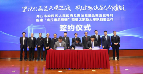 【商丘市梁園區(qū)人民政府與惠龍易通與商丘五得利舉行了組建“商丘惠龍易通”司機(jī)之家及大車隊?wèi)?zhàn)略合作簽約儀式】