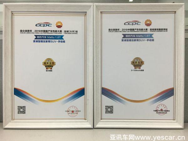 這是獵豹Mattu鹽城(大豐)站收獲蛇形繞樁挑戰(zhàn)賽0~100m加速賽冠軍之后,在牙克石的雪地上新收獲的兩個(gè)冠軍頭銜,充分展示了獵豹汽車(chē)這款SUV新軍的真正實(shí)力。