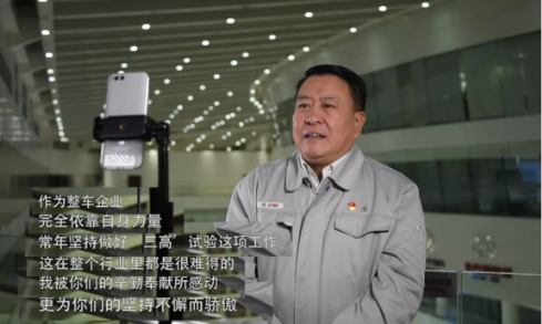 “作為整車企業(yè),完全依靠自身力量,常年堅(jiān)持做好‘三高’試驗(yàn)這項(xiàng)工作,這在整個(gè)行業(yè)里都是很難得的!我被你們的辛勤奉獻(xiàn)所感動(dòng),更為你們的堅(jiān)持不懈而驕傲!”徐和誼說