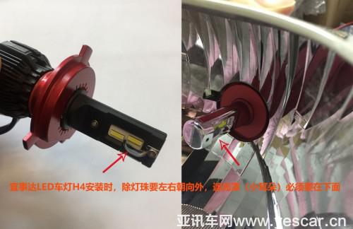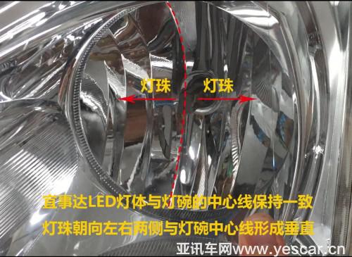 步驟七:將LED車燈插進(jìn)去后,需要旋轉(zhuǎn)調(diào)節(jié)燈珠左右朝向,也就是垂直安裝,見(jiàn)下面的示意圖,原理參看前幾期講過(guò)的LED發(fā)光特征是“面發(fā)光”,所以只有這樣安裝LED車燈才有正確的光型,否則光型不對(duì)散光!這點(diǎn)非常重要!?。?/strong>很多車主甚至安裝師傅不了解,誤認(rèn)為是產(chǎn)品的問(wèn)題,其實(shí)是沒(méi)有正確安裝造成的。另外宜事達(dá)所有型號(hào)產(chǎn)品均為360度可旋轉(zhuǎn)調(diào)節(jié)卡盤(pán),因此在車燈插進(jìn)去之后,可根據(jù)實(shí)際需要自由旋轉(zhuǎn)來(lái)調(diào)節(jié)光型。