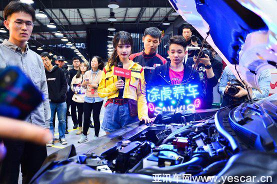 在見面會現(xiàn)場,舞臺上生活中甜美率性的小姐姐們變身一日店長,在途虎養(yǎng)車技術(shù)中心擔(dān)任一日店長,組隊PK學(xué)保養(yǎng),親授保養(yǎng)小知識,同時邀請粉絲互動小游戲“你畫我猜”,與粉絲近距離互動。