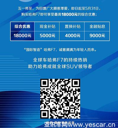 今年的“五一”很特別,不僅高速公路免費通行,而且放四天假。據(jù)小編所知,今年“五一”前夕很多85后、90后都有購車打算,買輛車不僅可以在小長假自駕暢玩,還能為夏日出行免去日曬雨淋之苦。福利來了!在2019年上海車展上大放異彩的“AI智能網(wǎng)聯(lián)SUV”哈弗F7,為助力年輕人早日實現(xiàn)購車夢想,在全國范圍內(nèi)啟動“提前五一惠”鉅惠大促活動。