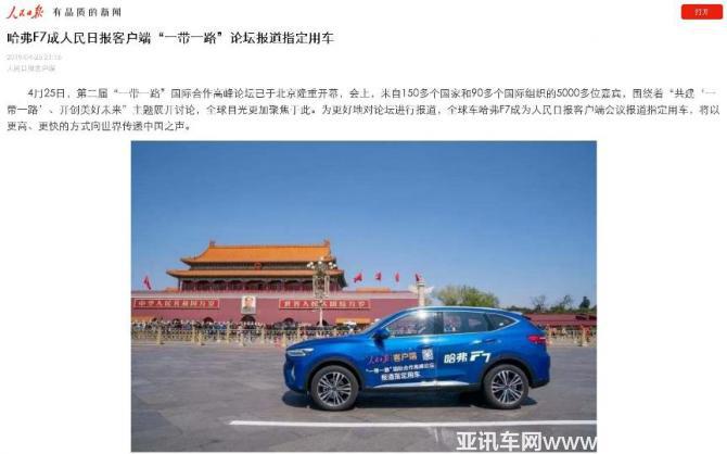 作為首款自主品牌全球車,哈弗F7自上市以來銷量持續(xù)攀升,連續(xù)4個(gè)月銷量過萬,成就12萬元級SUV新王者。此次與人民日報(bào)客戶端合作,作為其“一帶一路”國際合作高峰論壇報(bào)道指定用車,哈弗F7向世界展示了作為“全球車”的強(qiáng)大產(chǎn)品實(shí)力,收獲贊譽(yù)無數(shù)。