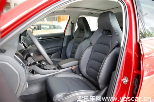 前排采用一體式的運動化座椅,兩側(cè)支撐性和包裹性比常規(guī)分體式座椅更好,能夠提供更有力的身體支持。