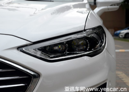福特蒙迪歐大燈的造型與格柵一樣,棱角變得鋒利,細長的大燈殺氣十足。