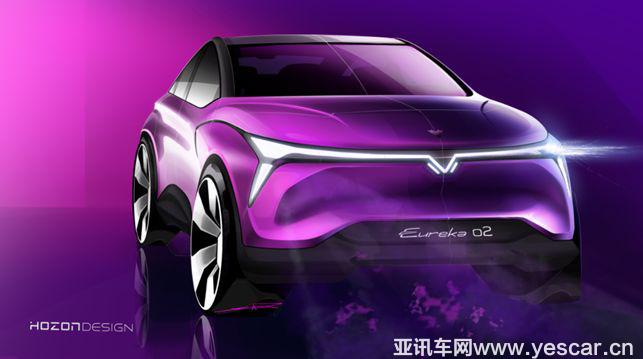 Eureka 02是合眾汽車基于平臺化、譜系化理念打造的全新概念車,一脈相承于合眾汽車的“自·信·在”設(shè)計哲學(xué),將優(yōu)良通過性與優(yōu)雅動感的運動型轎車造型相結(jié)合,延續(xù)了合眾汽車新一代設(shè)計所擁有的獨特造型特征,如較短的前后懸,側(cè)面雙折線腰線,家族式Y(jié)字形貫穿式前大燈,貫穿式后尾燈等。整車輪廓簡潔流暢,車頭前傾,A柱略微前移,車頂曲面自然順滑的流動延伸到車尾,四個輪拱區(qū)域的曲面肌肉感十足,配合超大尺寸的輪圈,呈現(xiàn)出蓄勢待發(fā)的前沖姿態(tài)。