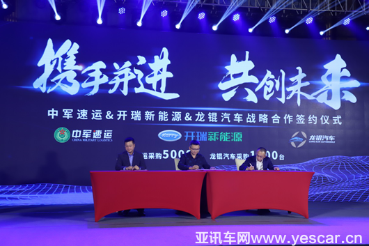 5月17-18日,以“攜手并進 共創(chuàng)未來”為主題的開瑞新能源&中軍速運&龍錕汽車&旋風新能源戰(zhàn)略合作簽約儀式在西安隆重舉行。開瑞新能源與各合作伙伴就新能源車型采購事宜達成共識,中軍速運簽訂5000臺訂單,龍錕汽車簽訂1000臺訂單,旋風新能源簽訂3000臺訂單。簽約儀式期間,開瑞新能源2019款大象EV也正式上市。此次戰(zhàn)略簽約儀式標志著開瑞新能源構建的新能源戰(zhàn)略生態(tài)圈得到了進一步的完善。