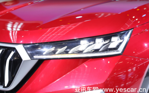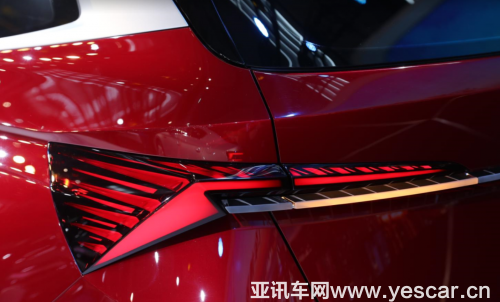 車內(nèi)燈組模塊造型如同犀利的“飛箭”一樣,很特別,就像六顆璀璨的水晶一樣上下排列,辨識(shí)度極高。而且紅色展車如同火焰一般充滿激情。