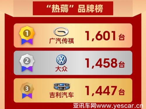 從彈個車官方數(shù)據(jù)來看,銷量排行前三的汽車品牌分別是廣汽傳祺、大眾和吉利汽車。