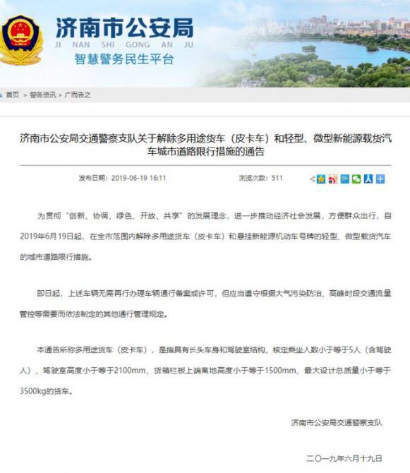 6月19日,濟(jì)南交警發(fā)布的一則“取消對(duì)皮卡車通行市區(qū)的區(qū)域限制”的通知,讓皮卡用戶歡呼了、沸騰了,甚至有人忍不住深情評(píng)論“終于等到你,還好我沒(méi)放棄……”