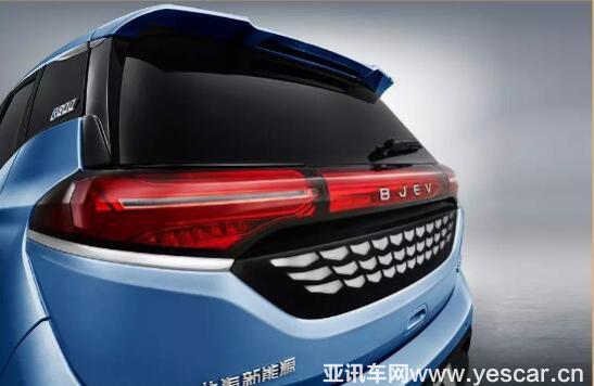 北汽EX3車尾在造型設(shè)計上同樣遵循前臉的設(shè)計理念,采用144顆LED發(fā)光單元貫穿車尾左右,形成一體式發(fā)光的尾燈組,流光溢彩般的點亮效果贏來頗高的回頭率?;匦S式尾部霧燈,能在雨、霧天氣給后車帶來良好的提示效果。