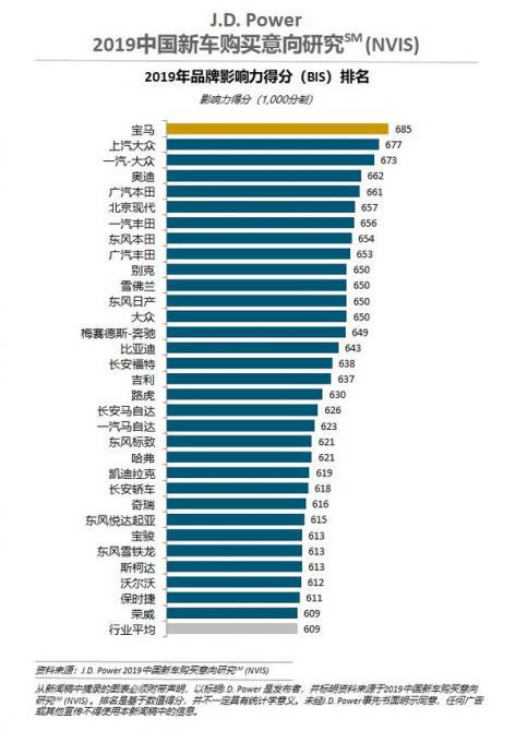 -寶馬、上汽大眾、一汽-大眾位列品牌影響力前三名