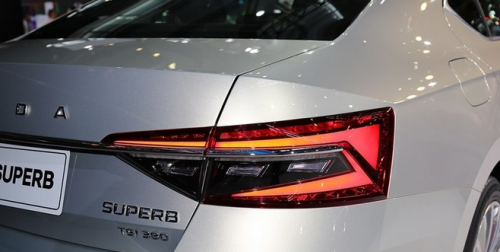 新款速派采用了精致的?KODA字母標識裝飾車尾,全新尾燈通過貫穿環(huán)繞式鍍鉻飾條連成一體,強調(diào)了橫向拉伸感,下方排氣尾管采用了鍍鉻的裝飾條,增加了車輛尾部整體的時尚感以及精致度。