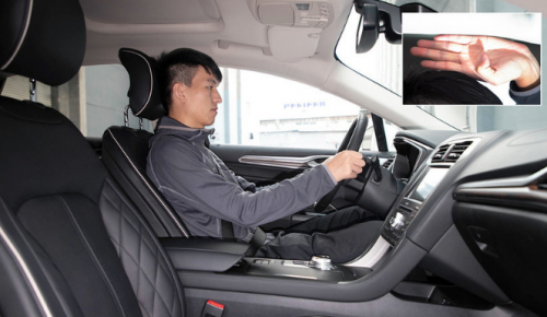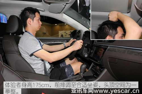體驗者身高180m,將前排座椅調(diào)至最低且坐姿合適時,可獲得四指的頭部空間。
