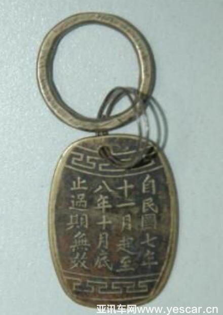 1918年的“車牌”——但不是機(jī)動(dòng)車牌照。此牌照最早出現(xiàn)于清朝光緒年間,解放后就消失了。材質(zhì)是紅銅和黃銅,極少一部分銀制車牌為當(dāng)時(shí)偽滿洲國皇族專用。