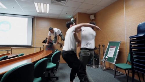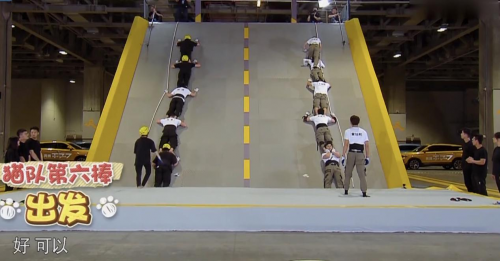 為了贏取更多的“鼠王”身份線索,鄭愷和林峯上演了一幕“兩貓斗六鼠”大戰(zhàn)。在“眾志成城”搭人梯環(huán)節(jié)中,面對陡峭的高墻,“大黑?!崩畛坎幌А吧碜骰?,讓成員們踩著自己的肩膀“爬墻”。在如此艱巨的困難面前,兩隊成員依靠頑強的意志力,紛紛完成挑戰(zhàn)。