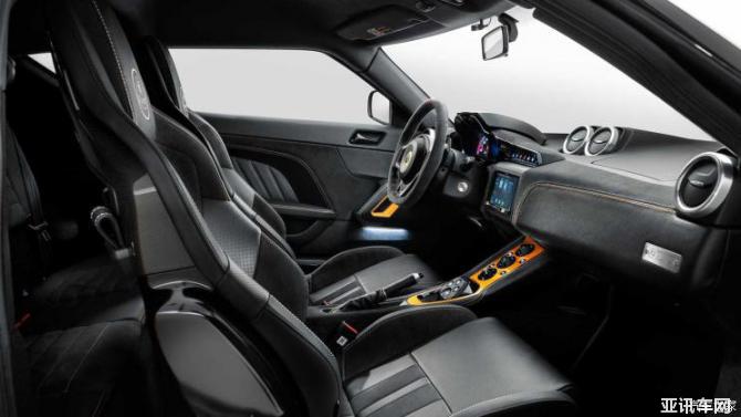 內(nèi)飾方面,新車整體設(shè)計沒有變化,材質(zhì)上大量運用了Alcantara材質(zhì),真皮材料也可選裝。對于極端客戶,路特斯還提供了選裝價格1萬美元的碳纖維選裝包,其將為路特斯Evora GT提供額外22kg的減重。碳纖維選裝包中包含有碳纖維材質(zhì)前進氣口、車頂、包圍、后擴散器、后擾流板等。此外,價值8000美元的選裝鈦合金排氣也將帶來10kg的減重。如果選裝所有原廠補品,該車的整備質(zhì)量可以降低至1408kg。