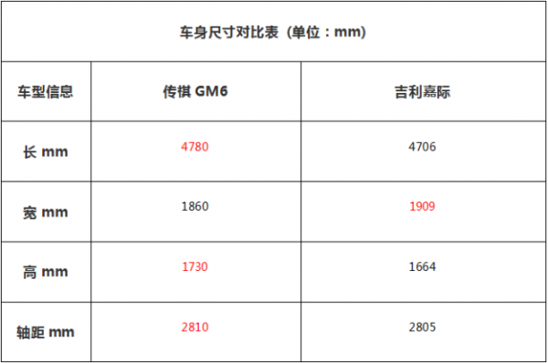 從整車尺寸來看,傳祺GM6的長、寬、高分別是4780mm、1860mm、1730mm,軸距達到2810mm。而吉利嘉際的長寬高分別是4706mm、1909mm、1690mm,軸距為2805mm。相比之下,傳祺GM6的長度、高度與軸距的優(yōu)勢都很明顯,為奶爸攜家人出行提供了更為寬敞的車內(nèi)空間.