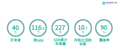 在開發(fā)者領(lǐng)域多年耕耘之后,極光已經(jīng)服務(wù)超過40萬移動開發(fā)者和116.5萬款移動應(yīng)用,其開發(fā)工具包(SDK)覆蓋的月獨立活躍設(shè)備數(shù)量高達10.7億,開發(fā)者產(chǎn)品已覆蓋市面上超過90%的移動設(shè)備。