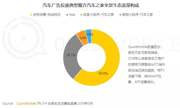 隨著移動互聯(lián)網(wǎng)步入下半場,流量增長紅利的消退讓企業(yè)不得不選擇新的獲客渠道。搶灘智能小程序,越來越成為一個新的增長點。以汽車之家為代表的一些公司已經(jīng)取得了初步成功,據(jù)QuestMobile最近發(fā)布的汽車行業(yè)洞察報告顯示,目前百度智能小程序在汽車之家全景流量生態(tài)中排名第三,超過了微信小程序所帶來的流量貢獻。