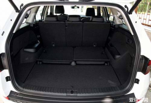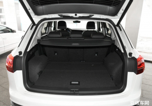 探岳車身尺寸為4589/1860/1660mm,軸距為2731mm,作為一款5座SUV,乘坐空間還是很有保障的。常規(guī)行李箱容積為506L,內(nèi)部格局也比較規(guī)整,空間利用率較高。將后排座椅全部放倒后,最大可拓展至1590L,在行李物品較多的情況下,也利于存儲。此外,探岳后排座椅可以前后移動,如果犧牲一些后排乘客的乘坐空間,后備廂空間可以得到進(jìn)一步拓展。