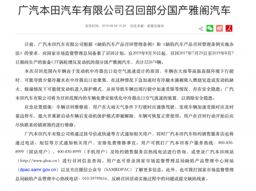 失速,究其原因,動力失速正是由于雅閣發(fā)動機中冷器出口處空氣流速設(shè)計缺陷所致。當(dāng)車輛在高溫高濕的環(huán)境下行駛,極易導(dǎo)致少量冷凝水在中冷器出口處聚集,一旦車輛急加速,冷凝水被瞬間吸入燃燒室造成發(fā)動機缺火,導(dǎo)致發(fā)動機進入極端模式,出現(xiàn)車子加速受限等情況,存在安全隱患