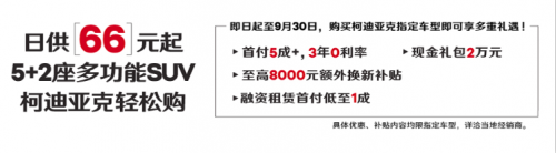 斯柯達(dá)旗下旗艦中型SUV柯迪亞克,自打2017年上市以來就表現(xiàn)亮眼,搭載著大眾集團(tuán)最新的MQB平臺,5+2靈活大空間驚喜不斷,配置升級,整體實力更強(qiáng)勁。雖然是中型SUV級別,但是價格卻下探到緊湊型SUV的售價區(qū)間,推出之后就憑借著搶眼的造型設(shè)計和實用的配置吸引不少消費者。近日斯柯達(dá)官方推出柯迪亞克Family促銷活動,購買柯迪亞克指定車型,日供僅需66元起,每天一頓下午茶的錢,大空間多功能SUV輕松開回家!