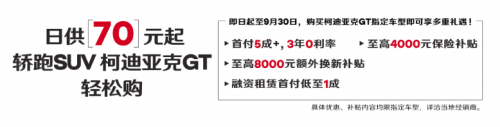 綜上所述,柯迪亞克GT作為上汽出品,不管是車身造型,還是乘坐舒適度、運(yùn)動(dòng)體驗(yàn)都很不錯(cuò)。而且目前斯柯達(dá)推出優(yōu)惠活動(dòng),首付五成+、3年0利率,日供僅需70元就可將柯迪亞克GT開回家。另外還有最高4000元保險(xiǎn)補(bǔ)貼,至高8000元額外換新補(bǔ)貼,如果是融資租賃方式購買,首付可以低至一成。所以喜歡柯迪亞克GT的朋友,現(xiàn)在正是下手的好時(shí)機(jī)!