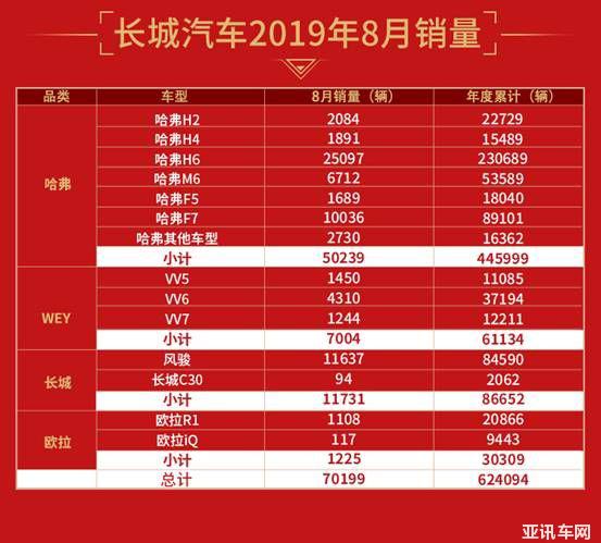 其中,哈弗品牌8月銷售新車50239輛,同比大漲17.04%,1-8月累計(jì)銷售445999輛,同比增長(zhǎng)9.98%,哈弗H6銷售25097輛,累計(jì)75個(gè)月蟬聯(lián)SUV銷量第一;長(zhǎng)城皮卡8月銷售11637輛,同比增長(zhǎng)12.27%,繼續(xù)領(lǐng)跑皮卡市場(chǎng)。