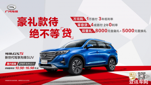 傳祺SUV家族三款熱銷車型強(qiáng)勢(shì)集結(jié),攜手前來(lái)大放”價(jià)”,掀起購(gòu)車熱潮。頭號(hào)明星車型——祺云概念智慧SUV傳祺GS4自上市以來(lái)便備受矚目,僅41個(gè)月,便累計(jì)銷量突破百萬(wàn),成為最快達(dá)到這一成績(jī)的中國(guó)品牌SUV。同時(shí),更在今年一舉斬獲中國(guó)品牌緊湊型SUV保值率第一榮耀。傳祺GS4的官方指導(dǎo)價(jià)為8.98萬(wàn)元-15.18萬(wàn)元,現(xiàn)在購(gòu)買即可享受:購(gòu)置稅全免,首付低至1萬(wàn)元,3年0利率,國(guó)六車型最高可享10000元金融貼息?!鞍偃f(wàn)車主智慧之選”,傳祺GS4等您來(lái)選購(gòu)!