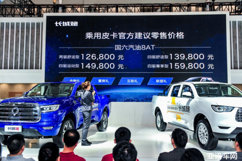 10月25日,長(zhǎng)城炮乘用版、商用版兩款皮卡同時(shí)在云南國(guó)際車展上市。