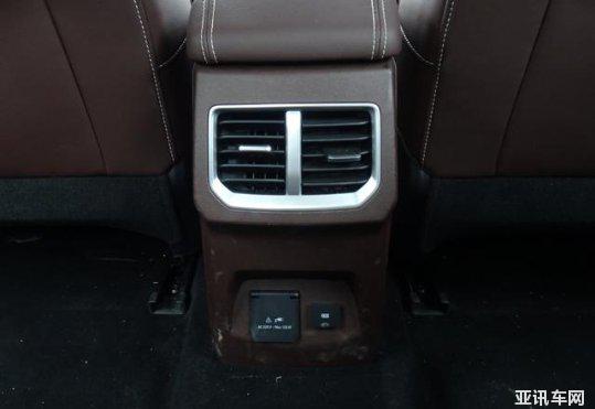 后排配備一個(gè)220V三項(xiàng)電源接口以及一個(gè)USB手機(jī)充電口,配備獨(dú)立出風(fēng)口。