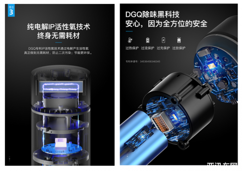 新一代DGQ車載除味器采用的是第2代DGQ創(chuàng)新醫(yī)學級IP活性氧技術(shù),是真正科學的化學分解原理,另外還配置了DGQ專利IP活性氧技術(shù),通過電解產(chǎn)生IP活性氧,真正做到無需耗材,防止二次污染。不僅如此,新一代DGQ車載除味器還配有四大安全保護,分別是過熱保護、過流保護、過充保護和過放保護,滿滿的安全值,只為了讓消費者使用更安心。