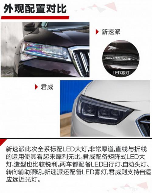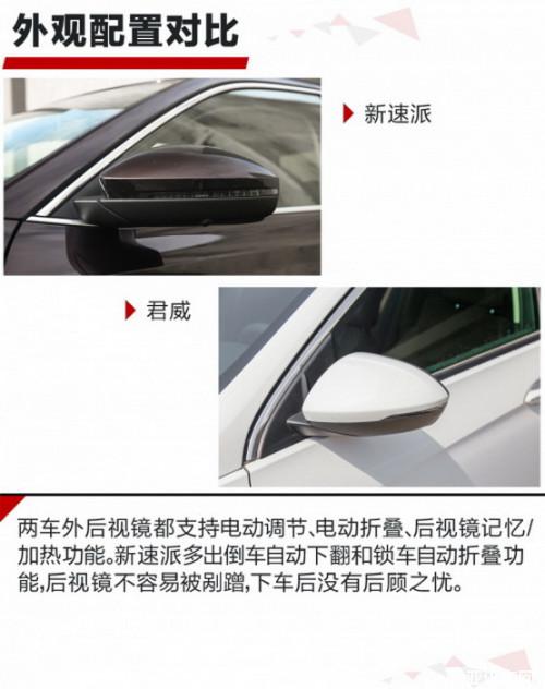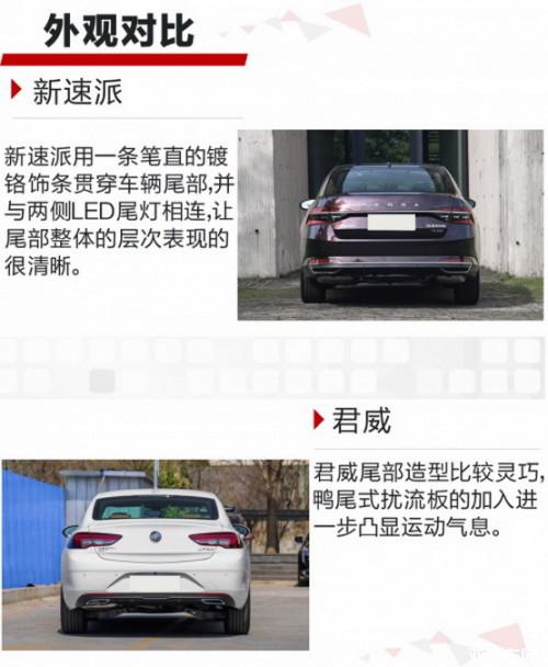 小結(jié):設計方面,新速派硬朗大氣的風格,既可以作為家用,也適用于一些商務接待場合,適用人群比較廣。君威運動化的造型更適合個人或家庭使用,不太適合商務場合。配置方面,新速派更豐富一些,多出外后視鏡鎖車自動折疊和倒車自動下翻功能,在倒車或者停車時不易被剮蹭,非常省心。